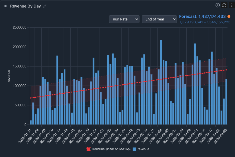 With just a few clicks, you can see a confidence score on your trendline and visualize a predicted range of possible future values.